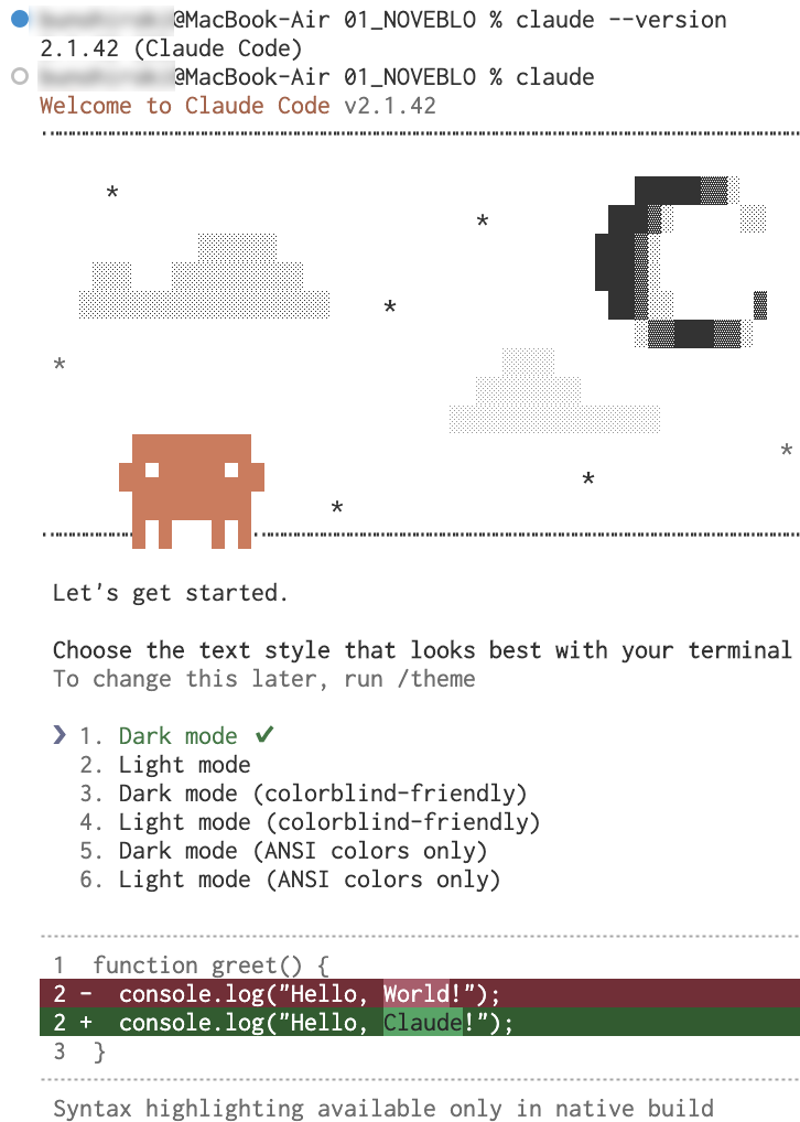 最近SNS(X)で再加熱しているClaude Code、昨年から使おうと思いつつ、なかなか手がつかなかったが、ようやく自分のPC(MacBook Air(M4))に導入して使ってみた。