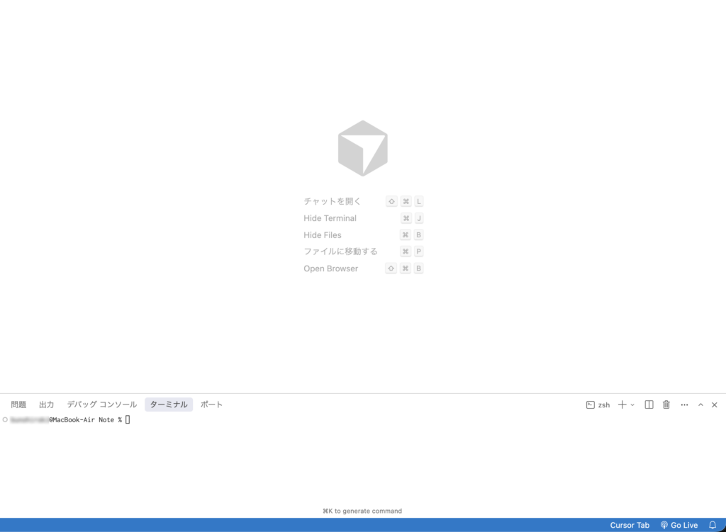 Cursorを再起動してターミナルを開く。