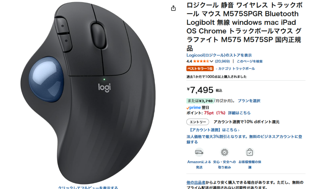 次に導入したのが、一部のガジェット好きやインフルエンサーが絶賛しているトラックボールマウスだ。