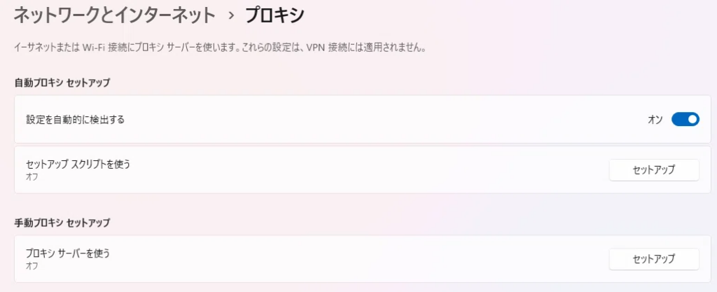 - 「プロキシ サーバーを使う」→ オフ